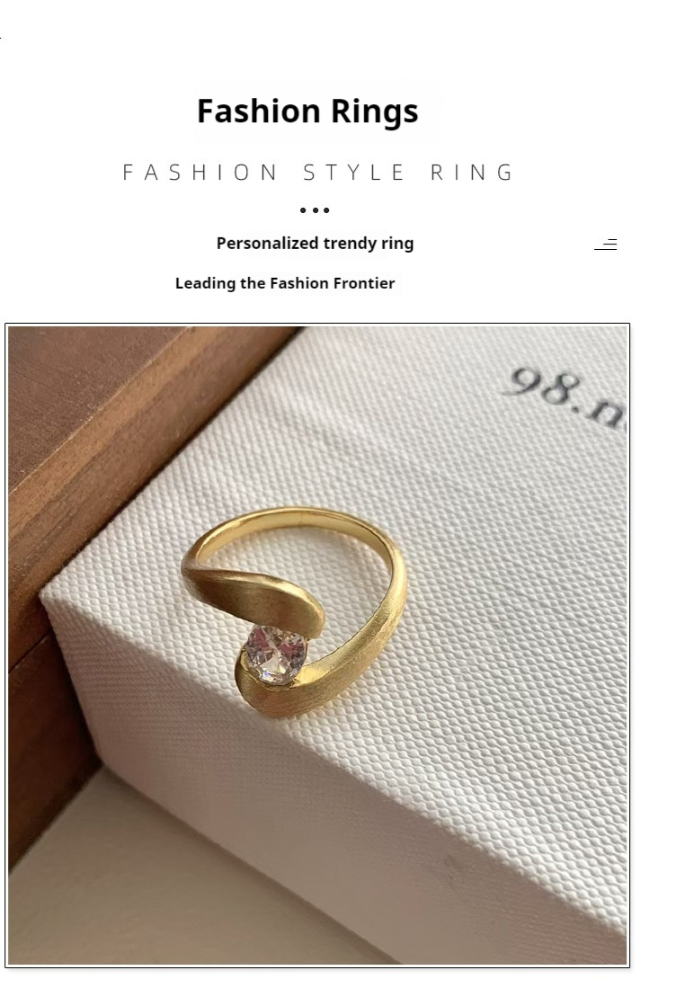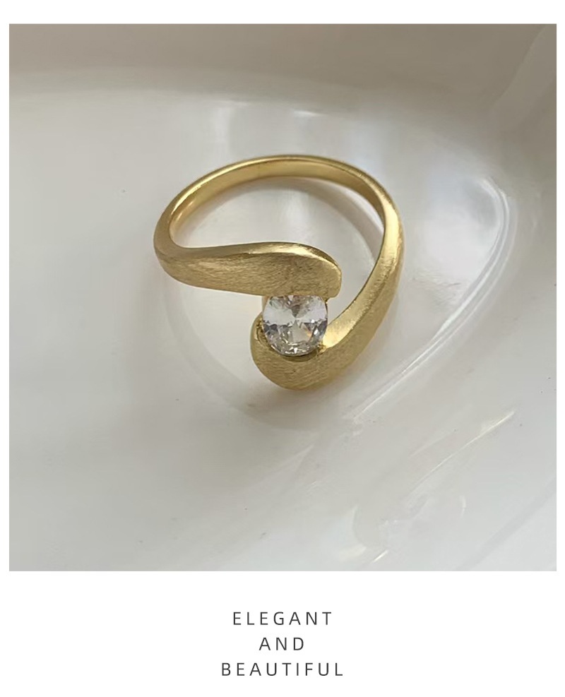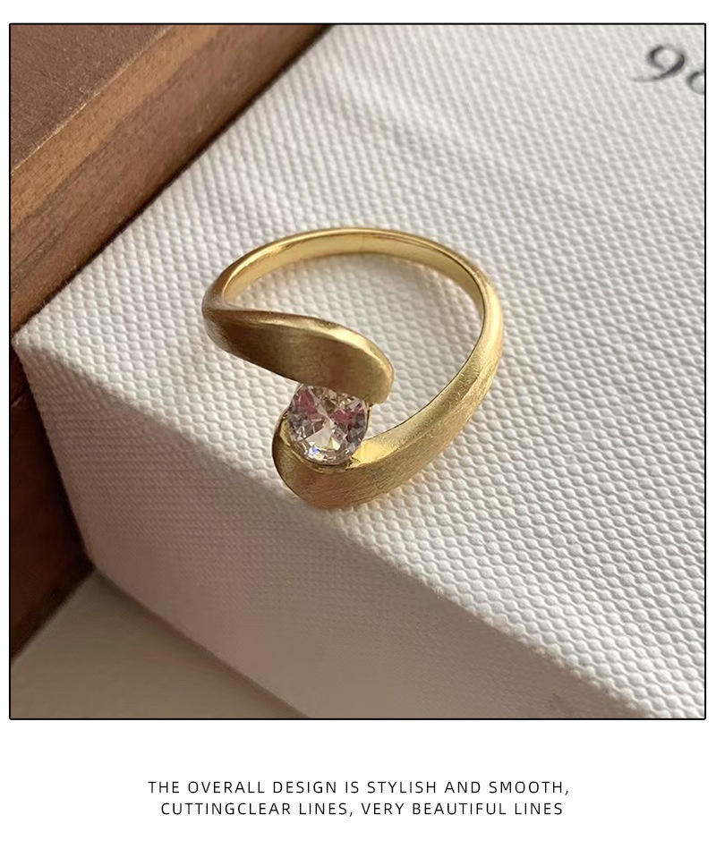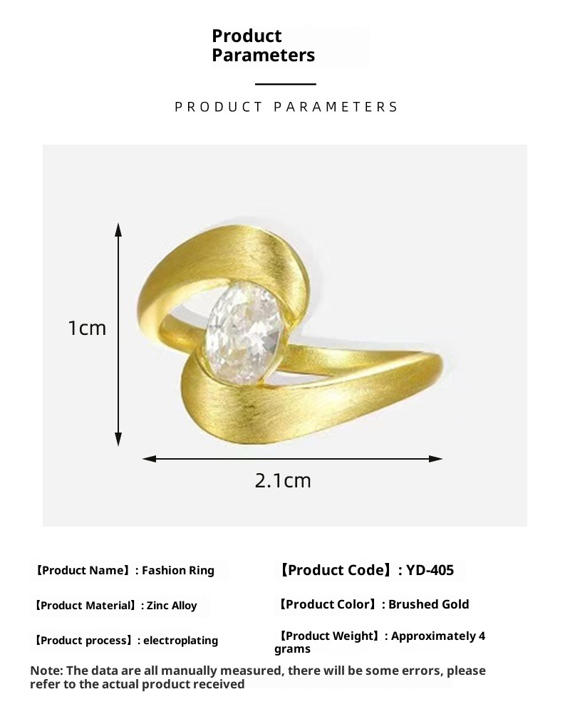 Irregular With Personality Brushed Zinc Alloy Ring Female Niche Inlaid Zircon